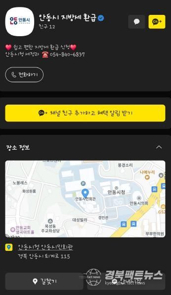 경북팩트뉴스 조현묵 기자 | 안동시가 지방세 환급을 보다 간편하게 신청할 수 있도록 ‘지방세 환급신청 전용 카카오톡 채널’을 개설했다. 기존의 불편한 환급 절차를 개선하고, 미환급금 누적 문제를 해소하기 위한 목적이다.