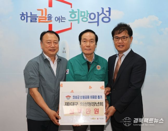 경북팩트뉴스 조현묵 기자 | 의성군은 5월 21일 재)대구의성청장년회에서 최근 산불로 큰 피해를 입은 고향 주민들을 돕기 위해 성금 300만원을 기탁했다고 밝혔다.