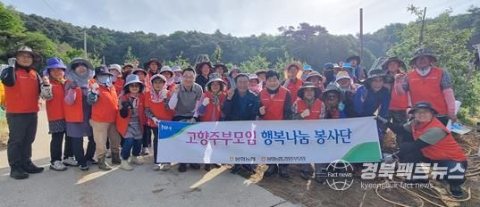 경북팩트뉴스 조현묵 기자 | 봉화농협은 21일 임직원과 고향주부모임회원, NH봉화군지부 등 40여명이 참여해 사과재배 농가에서 일손돕기를 진행했다.