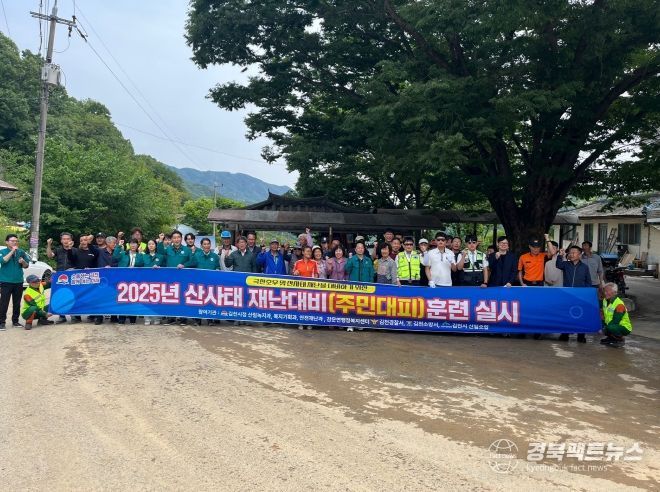 경북팩트뉴스 조현묵 기자 | 김천시는 지난 5월 23일 감문면 송북1리 마을회관에서 산사태 재난 대비 주민 대피 훈련을 실시하여 지역 주민의 상황대처 능력을 향상하고 대피체계를 점검했다.