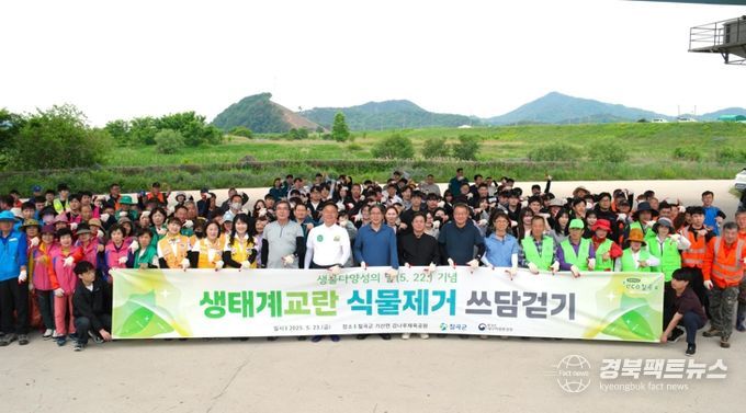 경북팩트뉴스 조현묵 기자 | 칠곡군은 지난 23일 ‘세계 생물다양성의 날(매년 5월 22일)’을 기념하여 기산면 강나루체육공원 일대에서 ‘ECO칠곡 쓰담걷기’ 및 생태계교란식물 제거 행사를 개최했다.