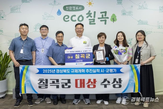 경북팩트뉴스 조현묵 기자 | 칠곡군은 지난 5월 23일 경상북도가 주관한 ‘2025년 규제개혁 추진실적 평가’에서 대상을 수상했다.