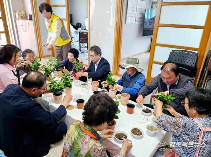 이번 봉사활동은 재능 나눔 자원봉사의 일환으로 손사랑회, 삼육칼갈이봉사단, 담쟁이봉사단, 실버아트봉사단, 대한적십자 산성면봉사회 등의 자원봉사단체가 참여하여 주민들을 위해 칼갈이, 원예치유, 식탁보만들기, 이·미용 등 다채로운 자원봉사활동을 진행하였다.