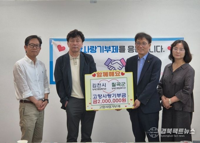 경북팩트뉴스 조현묵 기자 | 김천시장애인종합복지관과 칠곡군장애인종합복지관은 지난 5월 27일, 김천시장애인종합복지관에서 고향사랑기부제 상호 기부금 전달식을 가졌다.