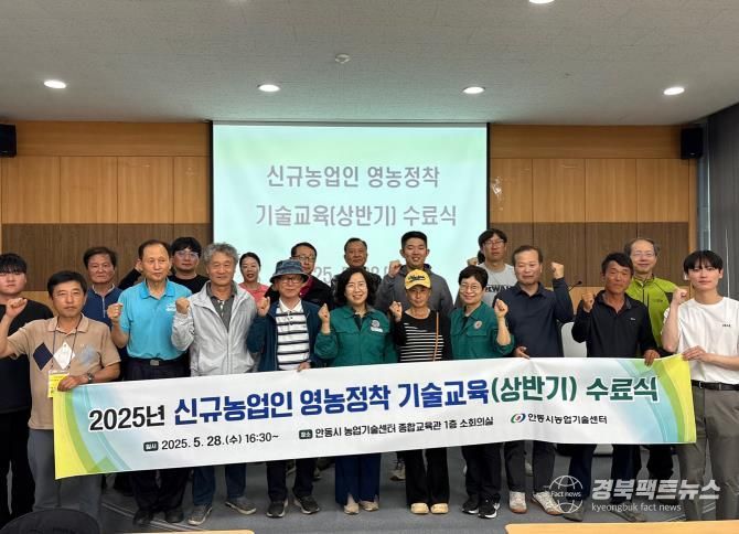 경북팩트뉴스 조현묵 기자 | 안동시농업기술센터는 5월 28일, ‘2025년도 신규농업인 영농정착 기술교육’ 수료식을 개최하고, 교육과정을 성공적으로 마무리했다고 밝혔다.