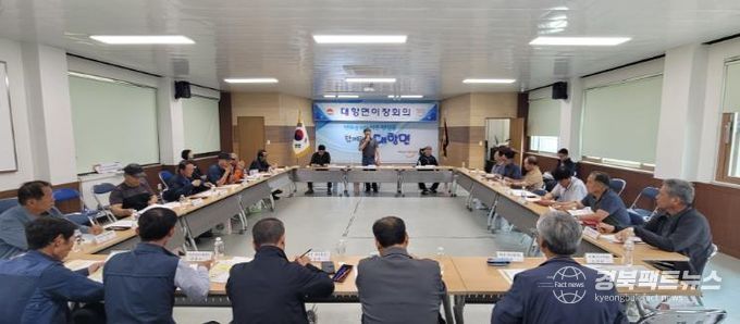 경북팩트뉴스 조현묵 기자 | 김천시 대항면은 5월 27일 대항면 행정복지센터 2층 회의실에서 최병근 도의원, 이상욱·이명기·김응숙 시의원, 봉산대항면대 고부기 대장, 직지파출소 박희범 소장이 참석한 가운데 5월 2차 대항면 이장회의를 개최했다.