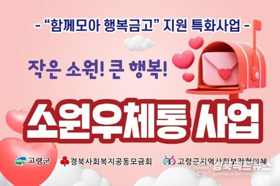 경북팩트뉴스 조현묵 기자 | 고령군지역사회보장협의체(공동위원장 이남철, 김종태)는 가정의 달을 맞아 특화사업인 ‘소원우체통’ 사업을 통해 지역 아동들의 소원을 들어주는 특별한 나눔을 실천했다.
