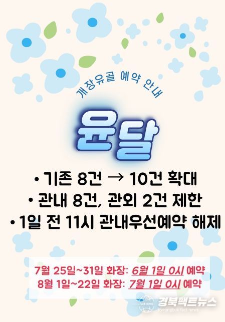 김천시립추모공원은 윤달 기간 동안 개장유골 화장 건수를 기존 1일 8구에서 10구로 확대 운영하며, 김천시민을 대상으로 한 우선 예약제도 함께 시행한다.