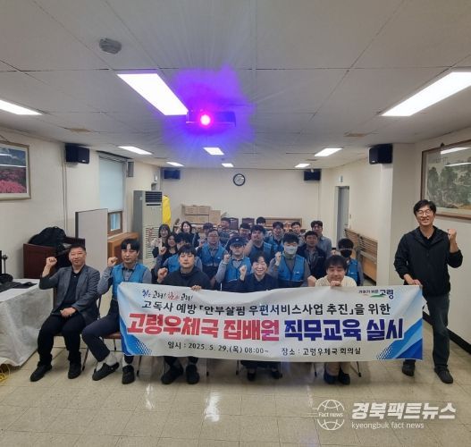 경북팩트뉴스 조현묵 기자 | 고령군은 5월 29일 오전 8시 고령우체국 회의실에서 우체국 ‘집배원’ 19명을 대상으로 『안부살핌 우편서비스 사업』추진을 위한 개인정보보호 등 직무 교육을 실시했다.