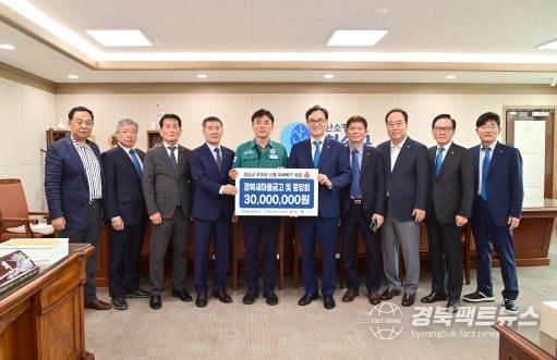 경북팩트뉴스 조현묵 기자 | 청송군은 지난 27일 MG새마을금고가 청송군 산불 피해 이재민을 돕기 위해 3,000만 원의 성금을 전달했다고 밝혔다.