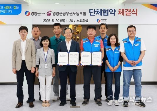 경북팩트뉴스 조현묵 기자 | 영양군은 30일 영양군청 소회의실에서 영양군공무원노동조합(위원장 오제호)과 단체협약을 체결하고 노‧사관계 상생‧발전의 발판을 마련했다.