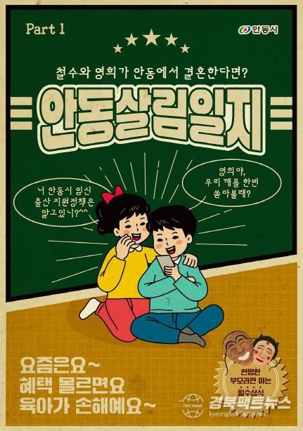 경북팩트뉴스 조현묵 기자 | ‘철수’와 ‘영희’가 안동에서 결혼해 자리를 잡고자 한다. 안동시는 철수, 영희와 같은 예비 부모와 출생가정을 위해, 임신부터 출산까지 체감도 높은 다양한 시책을 추진해 아이 키우기 좋은 환경 구축에 힘쓰고 있다.