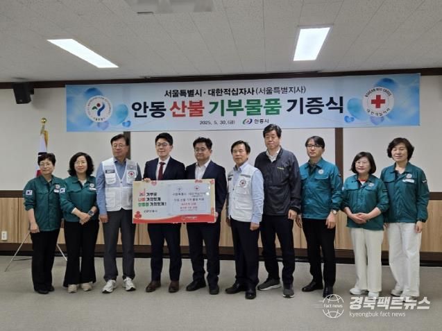 경북팩트뉴스 조현묵 기자 | 서울특별시와 대한적십자사 서울특별지사는 5월 30일, 안동시 산불피해 복구 지원을 위한 기부물품 기증식을 진행했다.