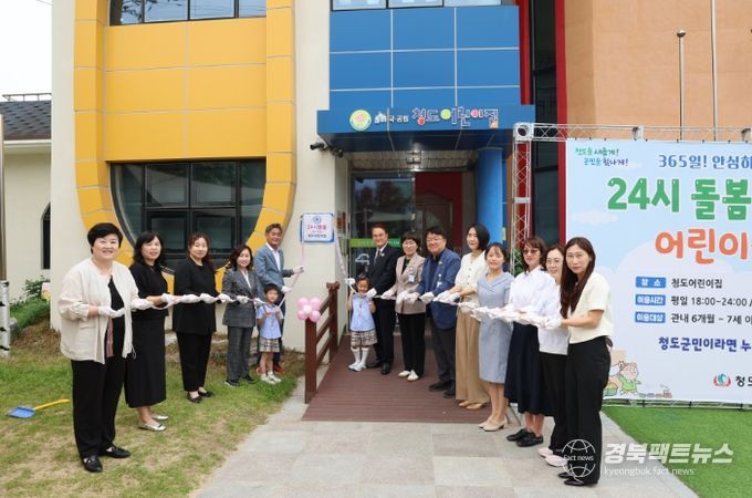 ‘24시돌봄 어린이집(청도어린이집, 청도읍 고수동2길 15)’은, 보호자의 갑작스러운 출장, 야근 등의 육아 공백으로 긴급돌봄이 필요한 경우 언제든지 아이를 안심하고 맡길 수 있는 보육시설이다. 돌봄서비스 대상은 관내 6개월∼7세 이하 미취학아동으로 서비스 이용 1일 전까지 어린이집에 전화로 사전 예약(054-371-2574)하면 된다. 평일은 18시부터 24시까지, 주말과 공휴일은 오전 9시부터 18시까지 이용 가능하며 이용료는 무료이다.