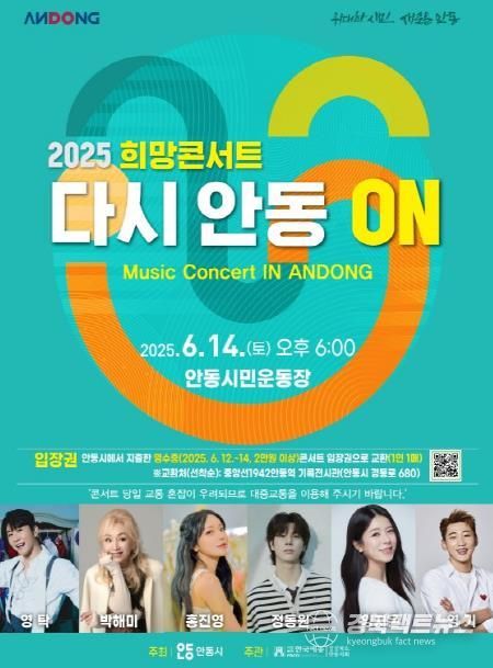 안동시 관계자는 “이번 콘서트가 산불피해로 어려움을 겪은 주민들에게 작은 위로가 되고, 시민과 관광객 모두가 함께 즐기는 뜻깊은 시간이 되길 바란다”며, “이와 함께 지역경제에도 활력을 불어넣는 계기가 되길 기대한다”고 전했다.