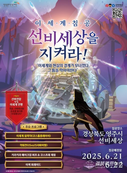 경북팩트뉴스 조현묵 기자 | 영주문화관광재단은 오는 6월 21일부터 22일까지 양일간 선비세상에서 판타지 세계관을 접목한 ‘어른이날 특명! 선비세상을 지켜라’를 개최한다.