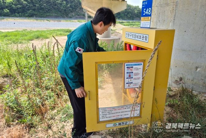 예천군은 지난 4월에 물놀이 안전관리 계획을 수립하고 물놀이 관리지역 및 위험구역 전수조사를 통해 안내표지판, 인명구조함, 구명조끼, 구명환 등 안전 시설물을 점검했다.