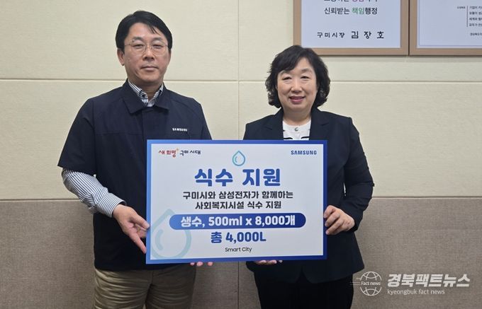 황은채 사회복지국장은 “환경의 날을 맞아 따뜻한 나눔을 실천해준 삼성전자 구미 환경안전그룹에 감사드린다”며, “생수 한 병에도 이웃을 향한 정성과 배려가 담겨 있다. 기부가 지역사회의 복지 향상에 실질적인 힘이 되고 있다”고 했다.