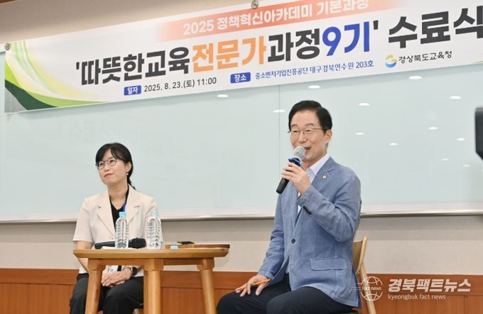 경북팩트뉴스 남유신 기자 | 경북교육청은 23일 경산시에 있는 중소벤처기업진흥공단 대구경북연수원에서 4주간의 과정을 마친 2025 정책혁신아카데미 기본과정 ‘따뜻한 교육전문가과정 9기’ 수료식을 성황리에 개최했다고 밝혔다.