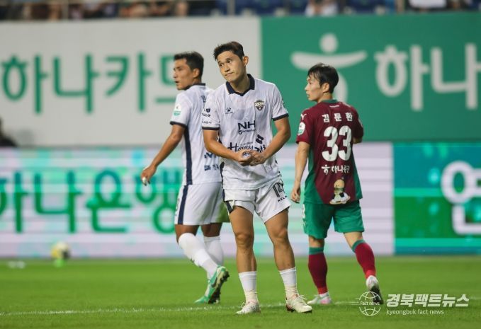 끝내 수적 열세 상황 속 코너킥에서 대전에 실점을 허용하며 1대 2로 아쉬운 패배를 당했다.