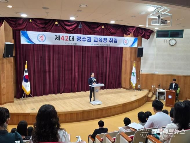 경북팩트뉴스 남유신 기자 | 경상북도경산교육지원청은 9월 1일 오전 9시 30분 교육지원청 본관 1강당에서 제42대 정수권 경산교육지원청 교육장 취임식을 열고, 교육장으로서의 첫 업무의 시작을 알렸다.