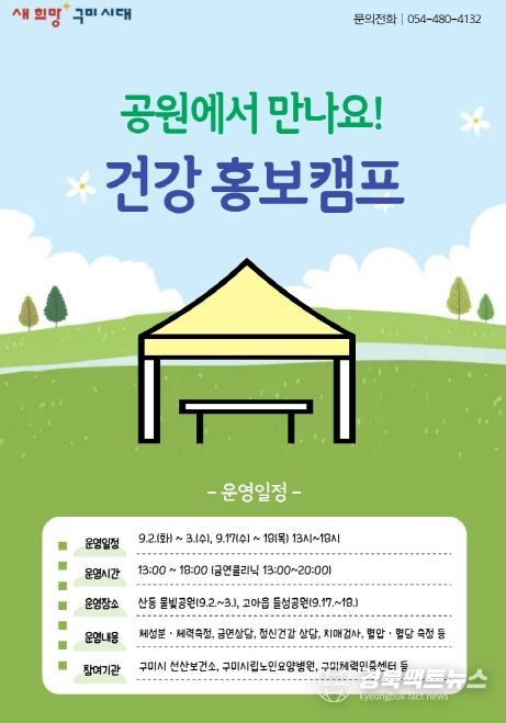 경북팩트뉴스 조현묵 기자 | 구미시 선산보건소가 지역 주민의 건강생활 실천과 만성질환 예방을 위해 ‘찾아가는 통합건강증진 홍보캠프’를 연다.