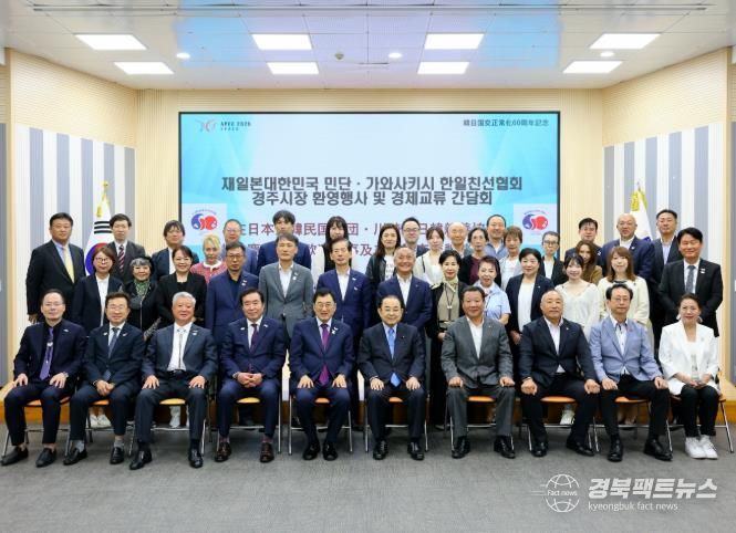 경북팩트뉴스 남유신 기자 | 경주시는 18일 청사 대회의실에서 일본 민단과 가와사키시 한일친선협회 방문단(회장 다나카 카즈노리) 42명을 맞아 환영행사를 열었다.