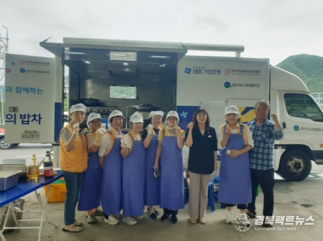 IBK기업은행의 후원으로 운영되는 ‘참! 좋은 사랑의 밥차’는 경산시노인종합복지관에서 매주 목요일마다 경산시 관내 경로당을 순회하며 현장에서 직접 조리한 음식을 제공해 드리는 사업으로 어르신들의 각광을 받고 있다.