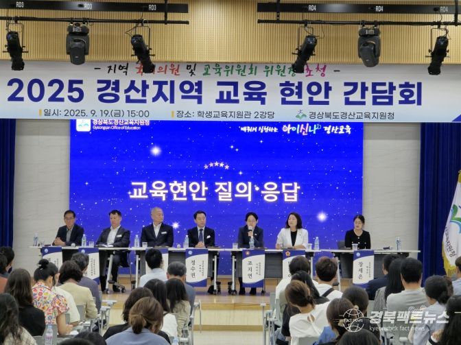 경북팩트뉴스 남유신 기자 | 경상북도경산교육지원청은 9월 19일 15:00, 학생교육지원관 2강당에서 조지연 국회의원과 박채아 교육위원회 위원장을 초청하여 경산지역 교육현안을 논의하는 간담회를 개최했다.
