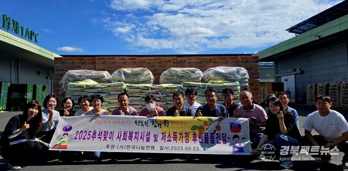 경북팩트뉴스 남유신 기자 | (사)한국나눔연맹은 9월 23일 추석맞이 관내 사회복지시설 및 저소득가정에 쌀 1,000포, 라면 1,000박스, 과자 1,000박스(7천3백만원상당)를 전달했다.