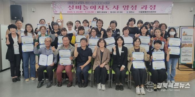 경북팩트뉴스 남유신 기자 | 영천시 평생학습관은 지난 23일 평생학습관 회의실에서 ‘실버놀이지도사 자격증 과정’을 성공적으로 마무리하고 수료식을 개최했다고 밝혔다.
