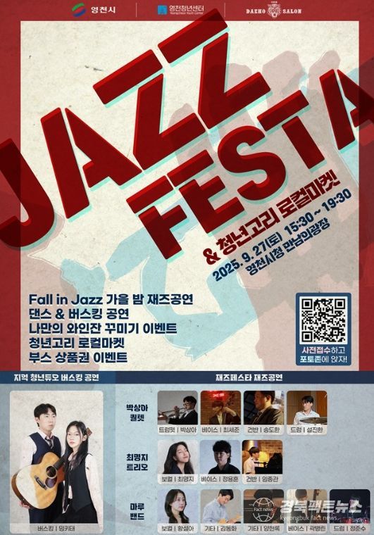 경북팩트뉴스 남유신 기자 | 영천시(시장 최기문)는 27일 시청 앞 만남의 광장에서 ‘영천시 재즈 페스타 ·청년고리 로컬마켓’을 개최한다고 밝혔다.