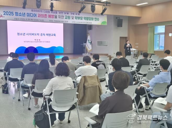 경북팩트뉴스 남유신 기자 | 경상북도경산교육지원청은 9월 25일 학생교육지원관 2강당에서 청소년 미디어 과의존 예방을 위한 교원 및 학부모 역량 강화 연수를 실시했다.
