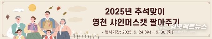 경북팩트뉴스 남유신 기자 | 전국 최대 과일 주산지인 영천시가 추석을 맞아 24일부터 30일까지 ‘영천 샤인머스캣 팔아주기’ 행사를 개최한다고 밝혔다.