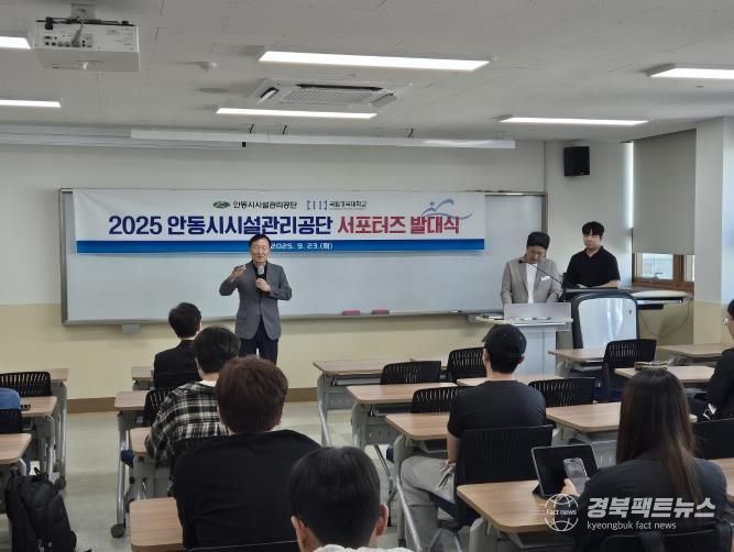경북팩트뉴스 남유신 기자 | 안동시시설관리공단은 9월 23일 국립 경국대학교와 산학협력을 통해 ‘대학생 서포터즈단 발대식’을 개최하고 본격적인 활동에 돌입했다.