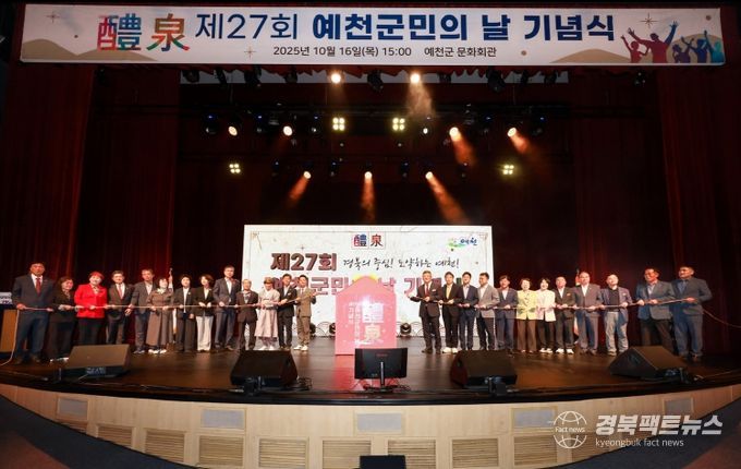 경북팩트뉴스 남유신 기자 | 예천군은 16일 오후 3시, 예천군문화회관에서 ‘제27회 예천군민의 날 기념식’ 을 성황리에 개최했다. 이번 행사는 기관·단체장과 군민 등 500여 명이 참석한 가운데, 군민의 자긍심을 높이고 군민 화합을 도모하는 뜻깊은 자리로 마련됐다.