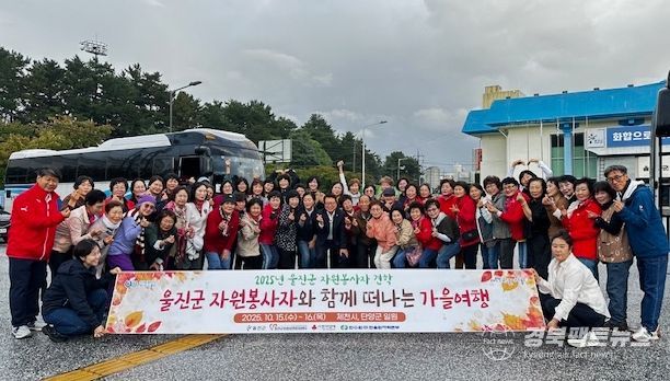 경북팩트뉴스 남유신 기자 | 울진군은 지난 10월 15일부터 16일까지 충청북도 일원(제천시, 단양군)에서 한 해 동안 우수한 자원봉사활동을 펼친 자원봉사자 70여 명을 대상으로‘2025년 울진군 자원봉사자 워크숍’을 실시했다.