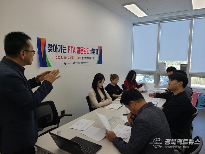 경북팩트뉴스 남유신 기자 | 포항상공회의소(회장 나주영) 경북동부FTA통상진흥센터는 23일 대구소재 동민산업협동조합(주) 기업부설연구소에서 수출기업 임직원을 대상으로 ‘찾아가는 FTA 활용교육’을 실시했다.