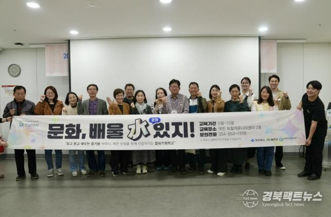 경북팩트뉴스 남유신 기자 | 예천군과 (재)예천문화관광재단의 ‘문화특화지역 조성사업’의 일환으로 진행되는 문화기획학교 '‘문화, 배울 수(水) 있지' 2기 과정이 성황리에 마무리됐다.