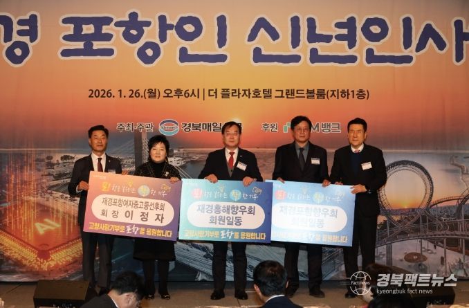 박종호 재경포항향우회장은 “새해를 맞아 고향 선후배들과 함께 포항에 실질적인 힘을 보탤 수 있어 매우 뜻깊다”며, “타향에서도 고향 포항이 더 살기 좋은 도시로 발전할 수 있도록 향우회 차원의 관심과 노력을 아끼지 않겠다”고 밝혔다.