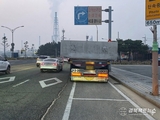 포항 송도 여신상 인근, 도로 침범 대형 화물트럭 ‘아찔’…주행 차량 위협