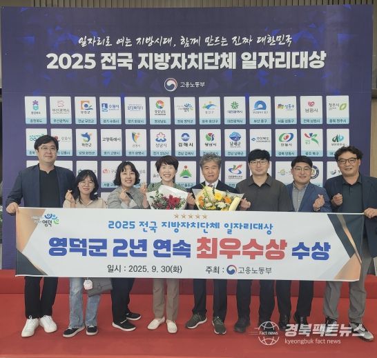 경북팩트뉴스 남유신 기자 | 영덕군은 지난달 30일 고용노동부가 주최한 ‘2025년 전국 지방자치단체 일자리 대상’에서 작년에 이어 2년 연속 ‘최우수상’을 거머쥐었다.