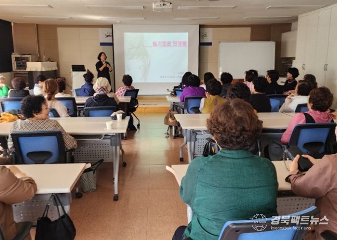 경북팩트뉴스 남유신 기자 | 봉화군은 9월 29일부터 30일까지 이틀간 3회에 걸쳐 봉화군 평생학습관 별관에서 여성단체회원 110명을 대상으로 ‘슬기로운 의(衣)생활’이란 주제로 여성대학을 진행했다.