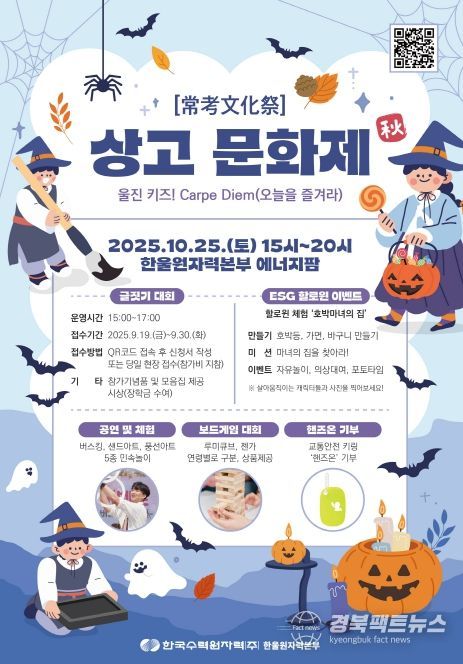 경북팩트뉴스 남유신 기자 | 한국수력원자력(주) 한울원자력본부)는 10월 25일 15시 한울에너지팜에서 제2회 ‘한울 상고문화제 가을(秋)편’ '울진 키즈! Carpe Diem(오늘을 즐겨라)'를 개최한다.