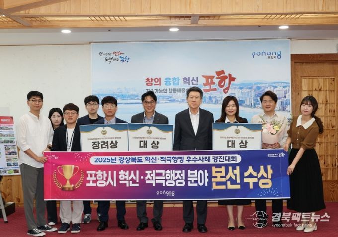 경북팩트뉴스 남유신 기자 | 포항시는 지난 26일 경상북도가 주관한 ‘2025년 경상북도 혁신 및 적극행정 우수사례 경진대회’에서 혁신·적극행정 분야 대상 2관왕과 혁신분야 장려상을 동시에 거머쥐었다.