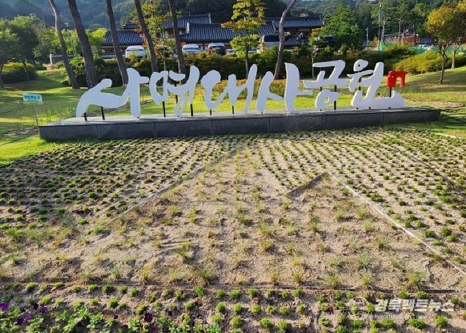 자수화단은 공원 입간판 앞 부지에 조성됐으며, 김천시 로고를 형상화한 디자인으로 꾸며졌다. 특히 붉은색과 분홍색이 어우러진 패랭이는 강렬한 시각적 포인트를 제공해 매년 봄부터 가을까지 대표적인 포토존으로 자리매김할 전망이다.