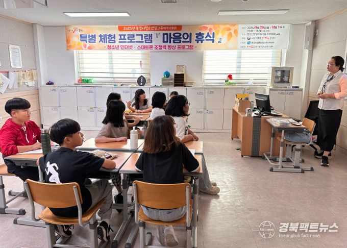 경북팩트뉴스 남유신 기자 | 문경시청소년방과후아카데미는 지난 9월29일과 10월 1일 이틀간 문경시청소년상담복지센터와 연계해 청소년 인터넷·스마트폰 조절력 향상 프로그램 『마음의 휴식』스마트 교실을 운영했다.