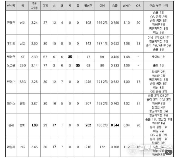 경북팩트뉴스 남유신 기자 | KBO가 2025 시즌 MVP와 신인상 후보를 확정했다.