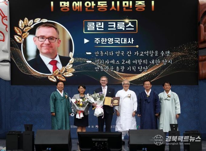 경북팩트뉴스 남유신 기자 | 안동시는 지난 10월 3일 열린 제23회 ‘안동의 날’ 기념식에서 콜린 제임스 크룩스(Colin James Crooks) 주한영국대사에게 명예안동시민증을 수여했다고 밝혔다.