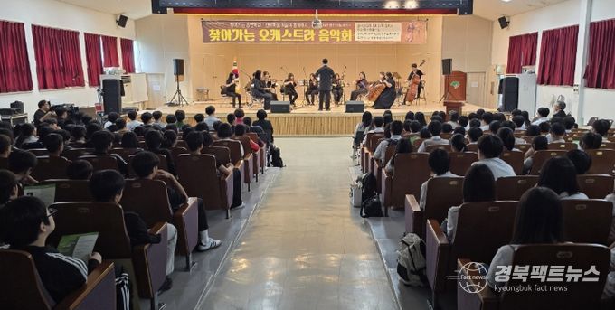 경북팩트뉴스 남유신 기자 | 영주시는 지난 2일 풍기문화의집에서 풍기중학교와 금계중학교 학생들을 대상으로 2025 영주미래교육지구 연계사업인 '찾아가는 공연학교' 오케스트라 음악회를 개최했다.